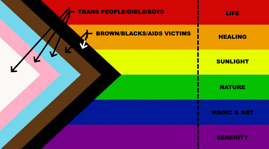 This is reportedly a ‘battle flag’ to include trans people, transitioners, boys, girls and people of color brown and black as well as AIDS victims.